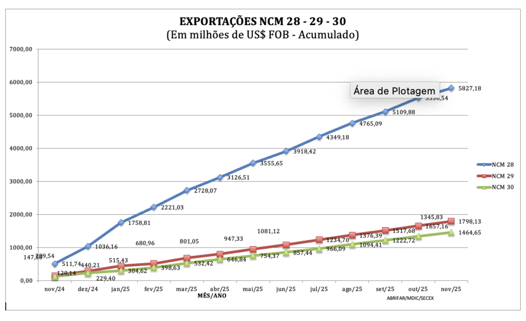 Total Acumulado Exportações NCM 28 – 29 – 30